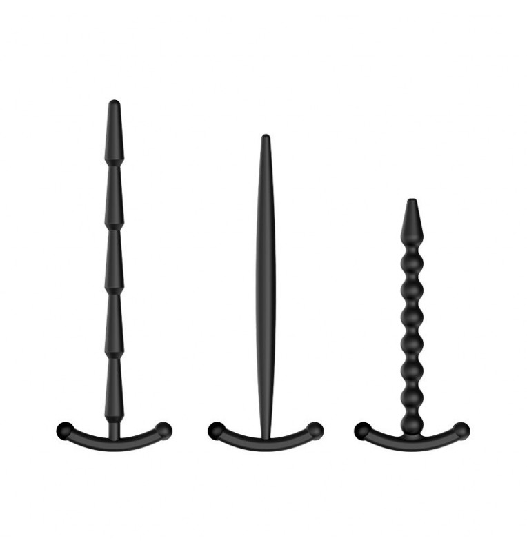 Набор Baile Advanced Class включает три уретральных плага различной формы, позволяющей проникнуть глубоко внутрь мочеиспускательного канала. Аксессуары имеют различную длину и форму, благодаря чему реализуются различные режимы воздействия на нервные окончания. Самый длинный плаг имеет форму елочки, затрудняющей извлечение и повышающей интенсивность стимуляции при обратном движении. Средний – гладкий, с тонким заостренным кончиком, очень легко скользит и вызывает исключительно нежные ощущения. Короткий стимулятор отличается тонким каплевидным кончиком, а также втулкой, будто составленной из множества мелких шариков – они неравномерно, но мягко массируют внутреннюю поверхность уретры. Основание изогнутое, удобное для удержания в пальцах. Материал – медицинский гипоаллергенный силикон. Длина плага-ёлочки - 11,3 см., диаметр - 0,6 см. Длина гладкого плага - 10 см., диаметр - 0,7 см. Длина плага с кончиком-каплей - 8,5 см., диаметр - 0,8 см.