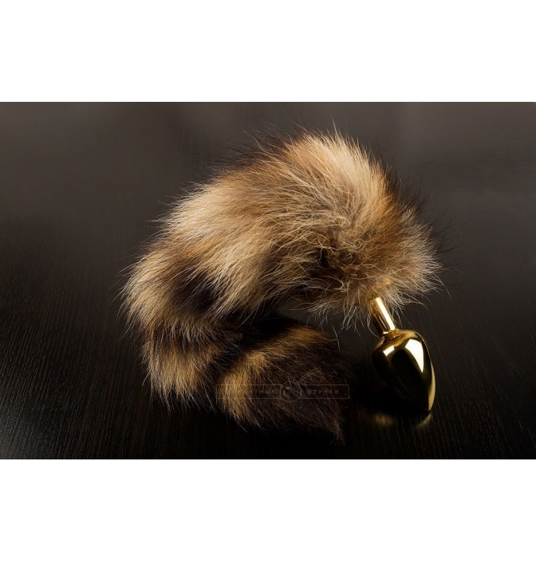 Маленькая золотистая пробка с хвостом енота - 7,5 см.