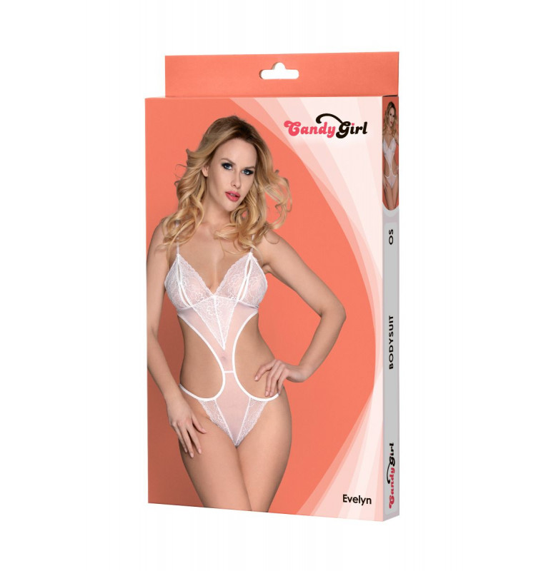 Боди-монокини Candy Girl Evelyn с открытой грудью и игривым бантиком сзади выполнено из эластичной прозрачной сетки и украшено кружевными вставками. Регулируемые бретели и многорядная застежка обеспечивают идеальную посадку.