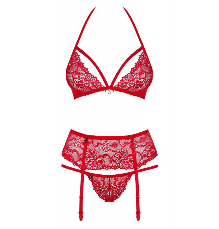 Яркий комплект из цветочного ажура. Подчеркивает все достоинства фигуры. Романтичный и сексуальный. В комплекте: лиф, трусики-стринги, пояс.