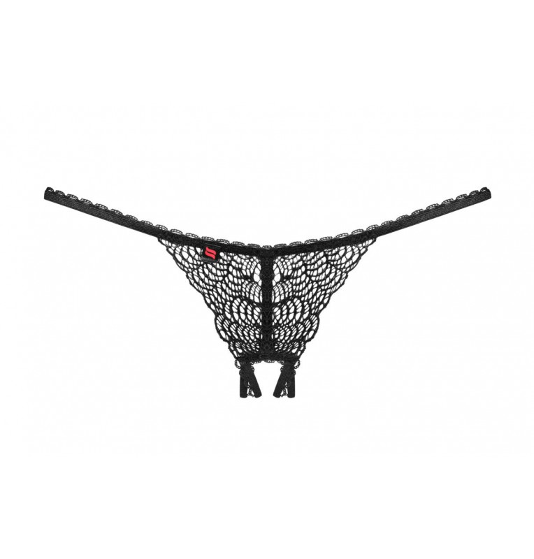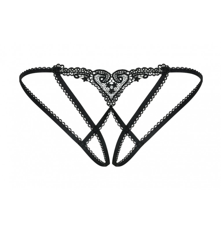 Контактные кружевные трусики невероятно сексуального дизайна. Сзади – геометрические переплетения ажурных лент, которые делают ягодицы еще более соблазнительными. Спереди – причудливая узорная паутинка кружева. Трусики ничего не прячут от глаз наблюдателя. Самое пикантное местечко остается в открытом интимном доступе. Их не придется снимать даже при самом тесном контакте. Игривый и очень изысканный вариант эротичной одежды для страстных раскованных вечеров.