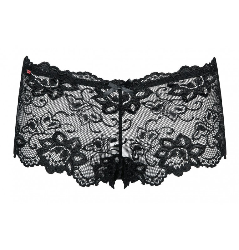 Если сегодня у вас игривое настроение, наденьте эти нежные кружевные шортики. Несмотря на то, что на них нет ни пикантных разрезов, ни вырезов, ни особого декора (милый атласный бантик не в счёт), они придают бёдрам манящей пышности. Крупный цветочный рисунок ажура делает так, словно на ваших прелестях распустились пышные бутоны. Которые так хочется потрогать…
