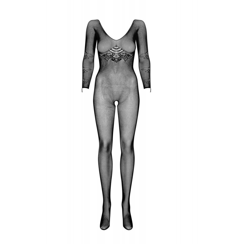 Сексуальный комбинезон из мелкой эластичной сеточки. С орнаментом, подчеркивающим красоту груди и ягодиц. И, конечно, с интимным доступом. Изумительный наряд для обольстительницы или эффектной госпожи. Длинные рукава надеваются через лямку на палец, поэтому смотрятся как ажурные кружевные перчатки. Ткань – полупрозрачная, поэтому не скрывает прелести, но сохраняет вуаль таинственности. Спина – с глубоким вырезом. А ягодицы прячутся за эффектным рисунком, похожим на экзотическую бабочку с распростертыми крыльями.