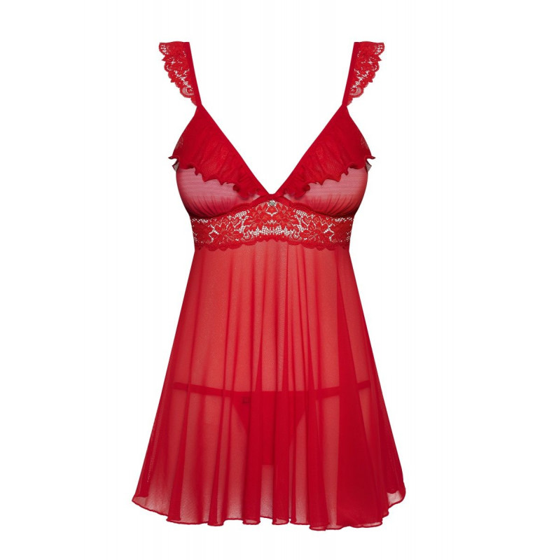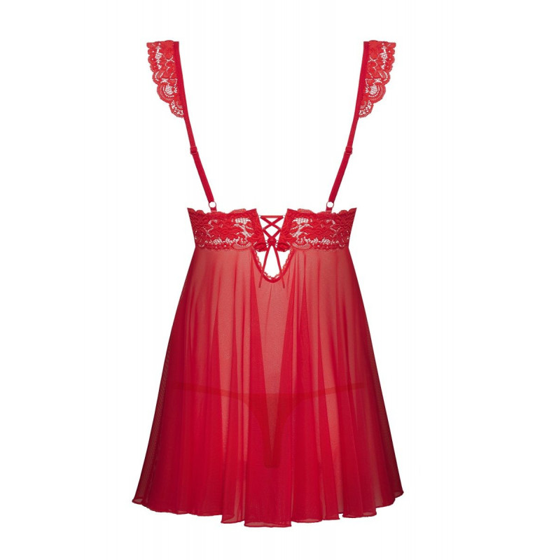 Бэби-долл и стринги. Изделие украшено кружевом и шнуровкой на спинке. Бретели регулируются. В комплекте: бэби-долл и стринги.