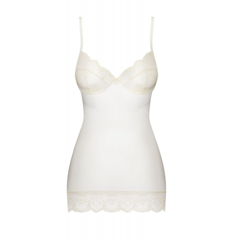 Элегантная сорочка на тонких бретелях.Чашка и низ сорочки выполнены из кружева. В комплекте: сорочка и трусики-стринги.