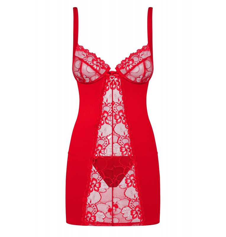 Алая сорочка Heartina с кружевами. Кружевной лиф на косточках, украшен маленькой подвеской в виде сердечка. В комплекте: сорочка, трусики-стринги.