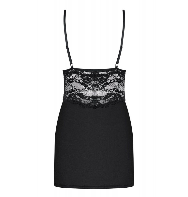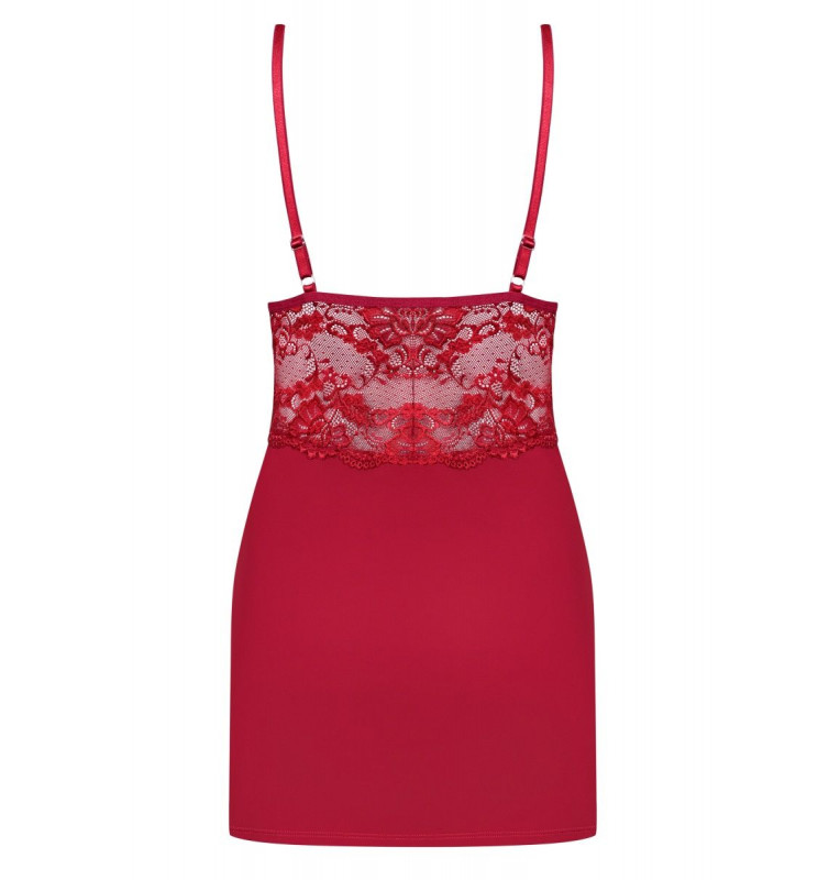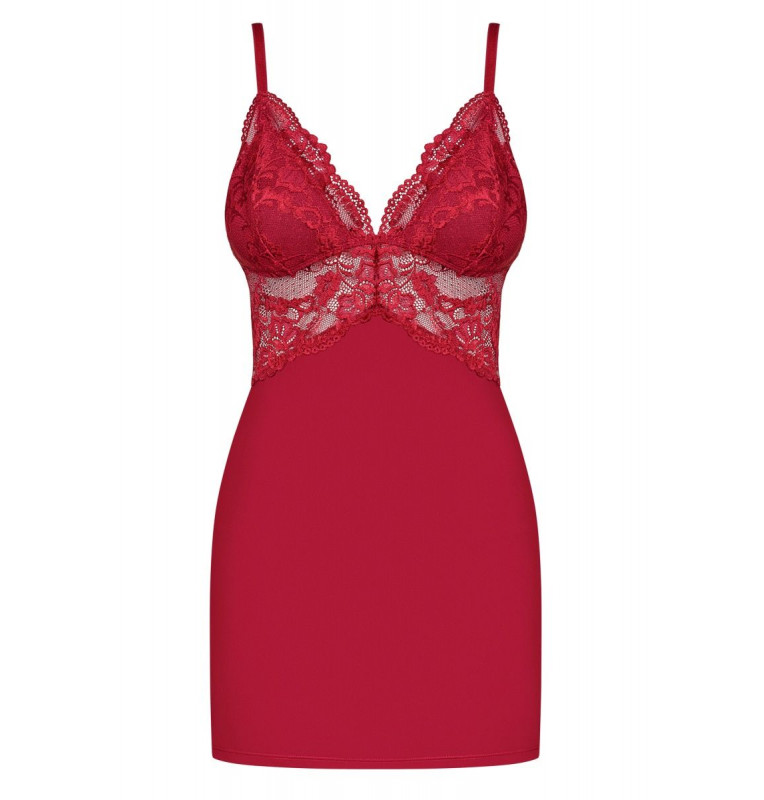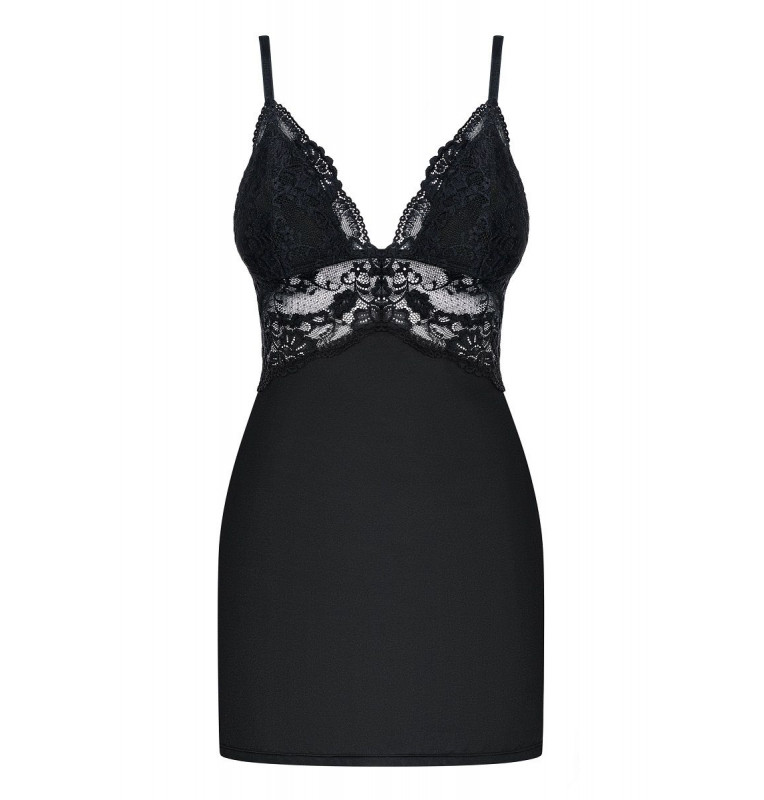 Эта прелестная сорочка – идеальный вариант не только для сна. Благодаря длине выше колена от мужчины не скроется ни красота ваших ножек, ни жар бёдер. Облегающий силуэт сорочки позволит подчеркнуть все пленительные изгибы фигуры. Верх сорочки отделан кружевом с цветочным узором, причём полоса под лифом полупрозрачна. Плотные чашечки без косточек придают бюсту пышности. Тоненькие бретели регулируются по длине. Трусики-стринги в комплекте. В комплекте: сорочка, трусики-стринги.