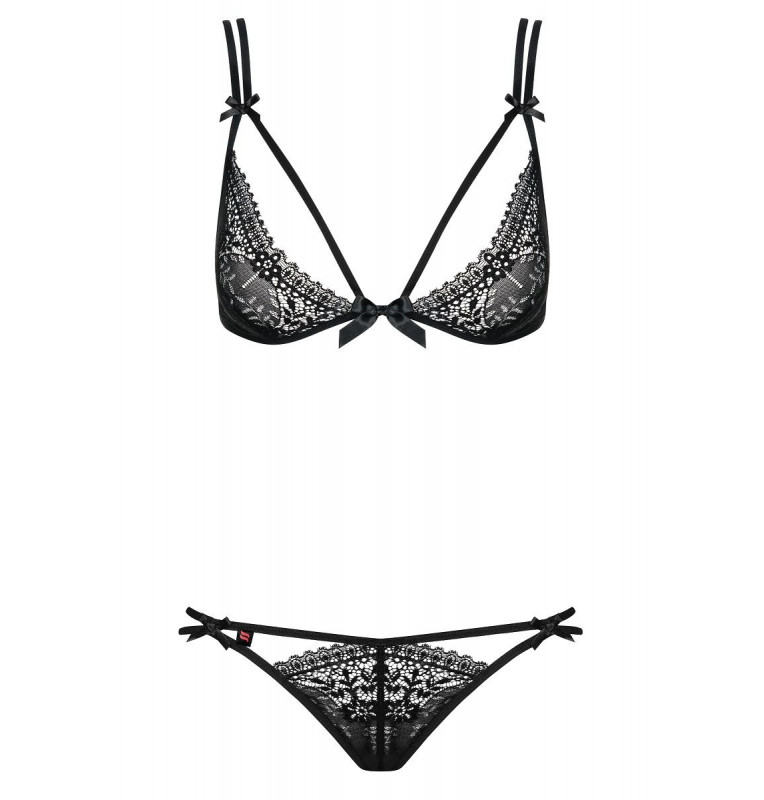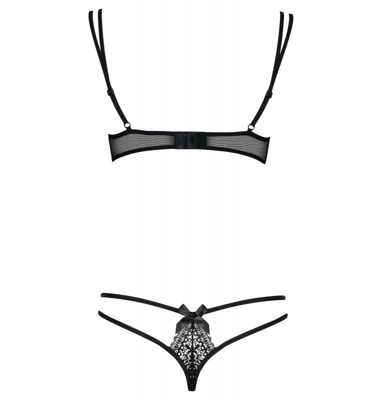 Удивите любимого, надев этот чарующий комплект Intensa. От такого сюрприза он точно придёт в восторг! А потом и вы – от пылких объятий и чувственных поцелуев. Изысканное кружево подчеркнёт пленительность ваших форм: пышность бёдер и округлость бюста. Двойные бретели, скрещённые на спинке, придадут образу кокетливости. Дополнительные бретели на лифе, как и двойные на трусиках-стрингах, добавят соблазна. А вот атласные бантики (три на лифе, два на трусиках) – игривости. В комплекте: бюстгальтер, трусики-стринг.