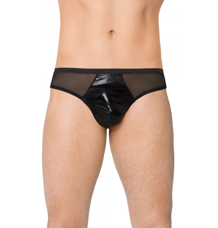 Мужские трусы-стринги из сетки и материала wet-look.