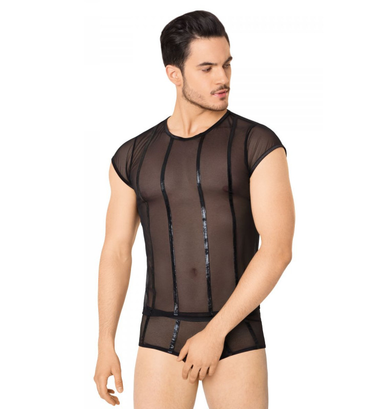 Экстравагантный комплект для смелых мужчин. Футболка и шорты выполнены из крупной эластичной сетки. В комплекте: футболка, шорты.
