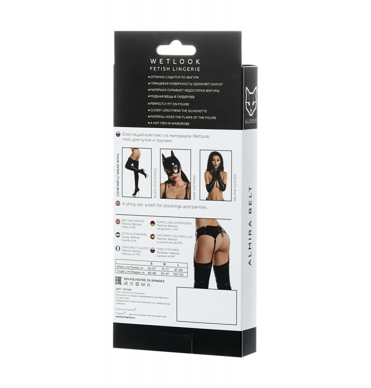 Встречайте новую, долгожданную и блестящую коллекцию белья из популярного материала wet-look – Glossy.Wet-look отлично садится по фигуре. Глянцевая поверхность визуально удлиняет силуэт. Плотный материал скроет мелкие недостатки фигуры. Модная вещь в сексуальном и базовом гардеробе. Блестящий комплект из материала wet-look: пояс для чулок и трусики. Глянцевый блеск и идеально гладкая поверхность делают образ уникальным. Шнуровка сзади на металлических петельках завершает дерзкий характер сексуального комплекта. В комплекте: трусики-стринги и пояс для чулок.