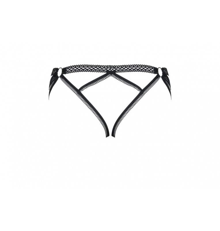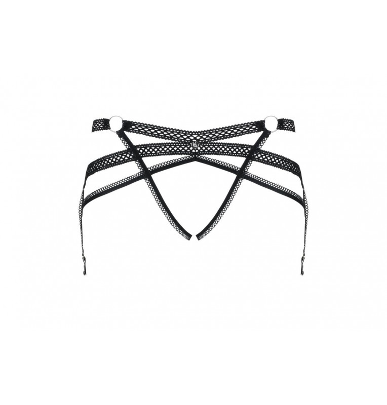 Классические кружевные пояса не идут ни в какое сравнение с этим поясом-трусиками! Выполненный из ажурной эластичной тесьмы, он подчёркивают пленительные изгибы фигуры, не скрывая при этом НИ-ЧЕ-ГО! Переплетение бретелей, соединяющихся на кольцах, подчеркивает пышность бёдер и красоту попки. Пажи для чулок расположены по бокам, что придаёт вашему конечному образу оригинальности. Подвязки для чулок регулируются.