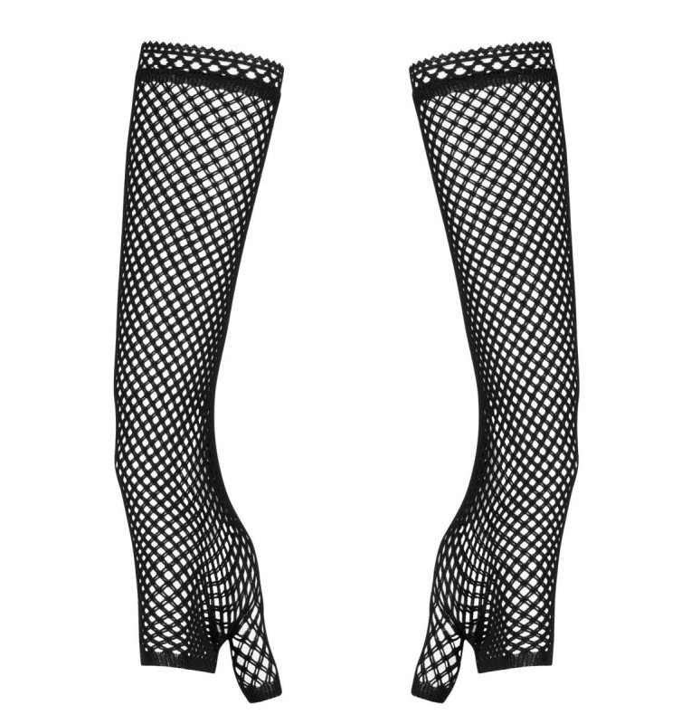 Один аксессуар может украсить собой весь комплект. Эти длинные перчатки, выполненные из крупной сетки, подчеркнут красоту рук и усилят прелесть объятий. Благодаря тому, что пальчики остаются открытыми, перчатки не придётся снимать для чувственных прикосновений и волнительных проникновений. Верх перчаток украшает кружевная тесьма.