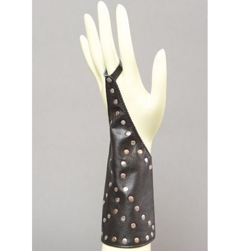 Пара кожаных проклёпанных нарукавников с петелькой на пальчик
