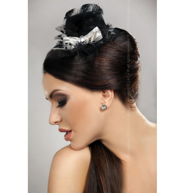 Чёрная мини-шляпка с серебристым бантом. Высота - 13 см.