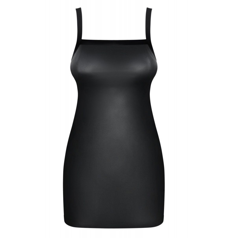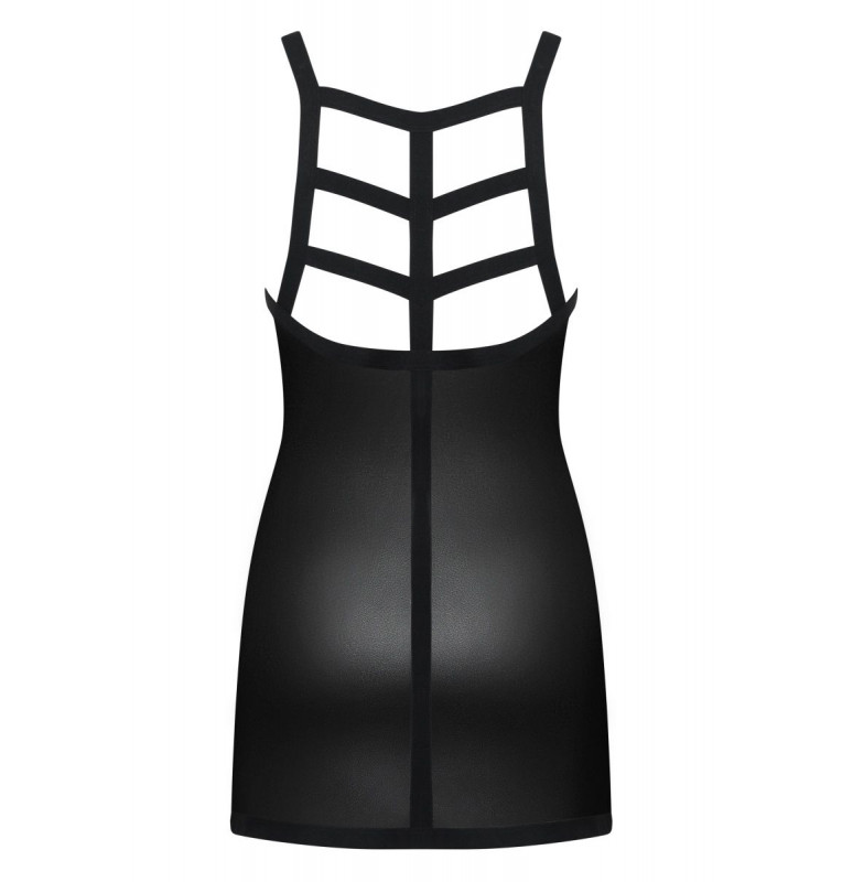 Эффектное платье Leatheria выполнено из тонкой эластичной эко-кожи. Бретели выполнены из широких стреп-лент, которые переплетаются на спинке. В комплекте: платье и трусики-стринги.