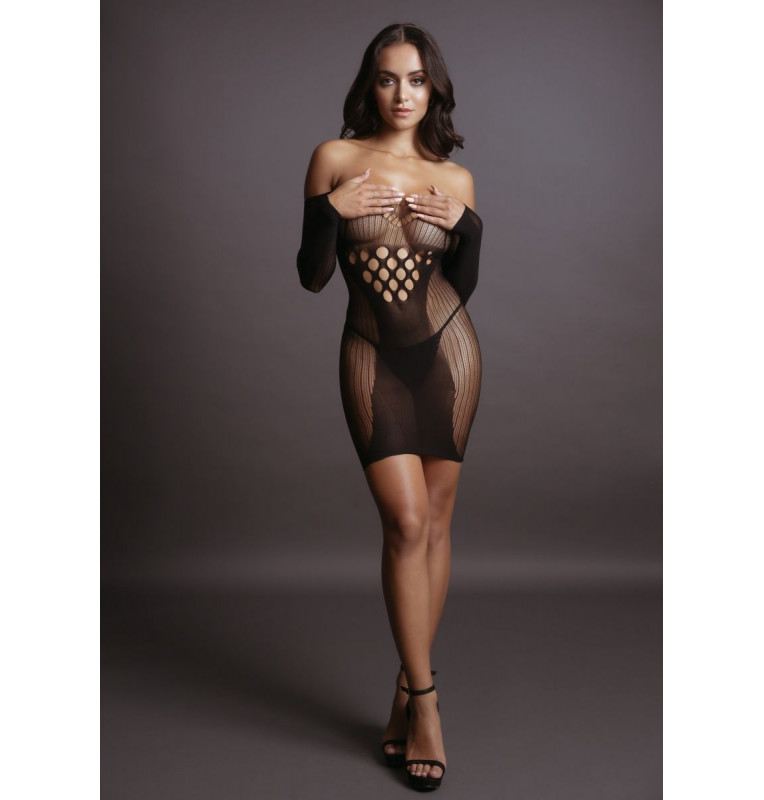 Long Sleeved Mini Dress - эротическое миниплатье с длинными рукавами. Оно имеет очень сексуальный контрастный рисунок, подчеркивающий форму тела. Благодаря использованию большего процента эластана белье может растягиваться в несколько раз и снова принимать исходное состояние. Трусики не входят в комплект!