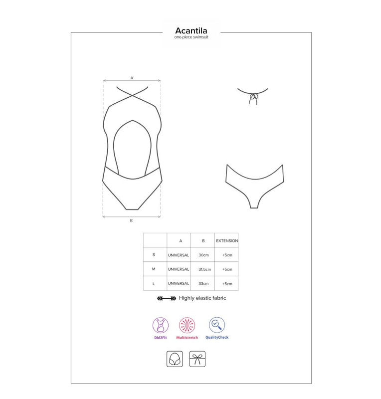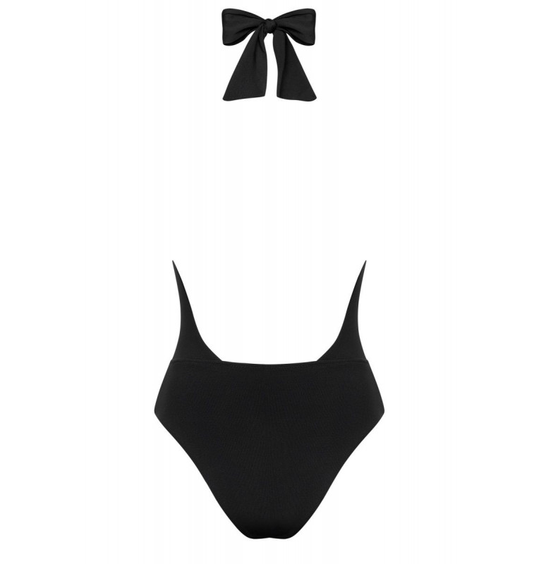Слитный купальник может быть гораздо сексуальнее раздельного. Если речь идет о такой модели как Acantila. Полностью обнаженная спина, трусики с открытыми ягодицами, переплетение широких лент через грудь с завязкой на шее. Фантазия уже рисует, как рука развязывает этот атласный бант, предоставляя взору еще больше прелестей. Купальник подчеркивает все достоинства фигуры: линия живота закрыта плотной тканью, ленты на груди формируют красивую ложбинку, высокие вырезы по бедрам визуально удлиняют ноги.