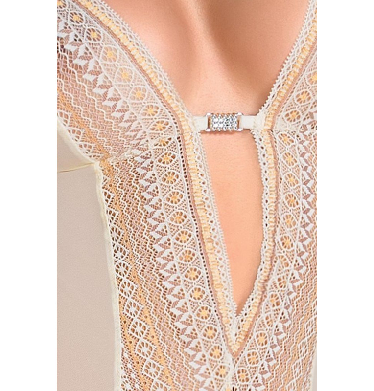 Корсаж выполнен из нежного эластичного сатина, тюля и элегантного кружева, которое подчёркивает формы каждой женщины. Входящие в комплект стринги подчёркивают нетипичный, исключительно сексуальный характер корсажа. В комплекте: корсаж, стринги.