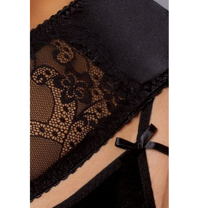 Если на вас этот шикарный комплект из эластичного испанского сатина, ни одно чувствительное местечко не ускользнёт от распалённого желанием взгляда мужчины. Ваше тело – совершенный бриллиант, а этот бюстгальтер, широкий пояс и трусики с доступом – великолепная оправа. Благодаря изысканному ажуру и непрозрачности сатина ваша красота засверкает ярче миллионов алмазов! В комплекте: бюстгальтер, пояс, трусики-стринг.