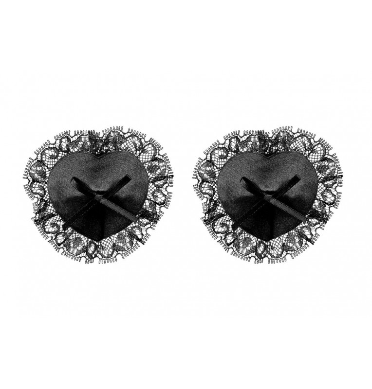 Черные пэстисы в форме сердечек. Украшены кружевной оборкой и атласными бантиками.
