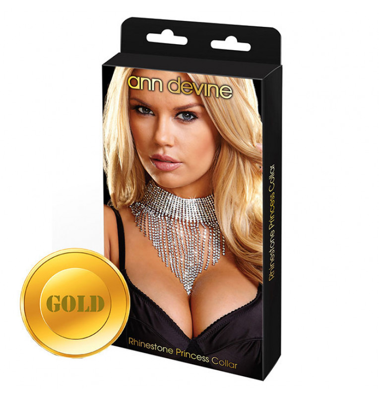 Хочешь почувствовать себя королевой? Теперь это очень просто! Шикарное ожерелье от Ann Devine из ярких, сверкающих прозрачных кристаллов с золотым металлом. Идеальное украшения для платья с глубоким декольте или роскошного белья, которые ты выбрала для сегодняшнего свидания. Хотя вполне вероятно, что любимый захочет видеть тебя только в этом ожерелье, без лишних деталей! Ширина - 3,5 см.