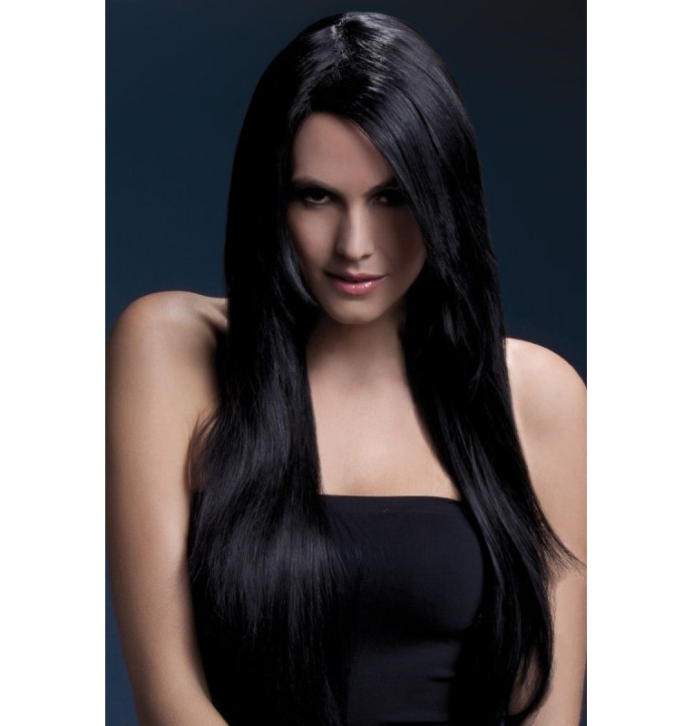 Длинные черные волосы парика помогут создать образ соблазнительной и роковой красавицы, которая не знает отказа ни в жизни, ни в сексе.