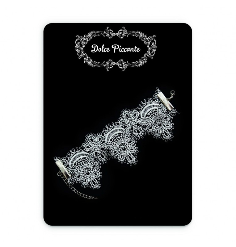 Изящный, почти невесомый кружевной браслет - нежный, очень женственный аксессуар, которым можно дополнить эротический наряд или даже платье невесты. Коллекция Dolce Piccante. Французское кружево, родированный металл серебряного цвета, ручная работа, лимитированный тираж. Восхитительная коллекция для ночей красивой любви.