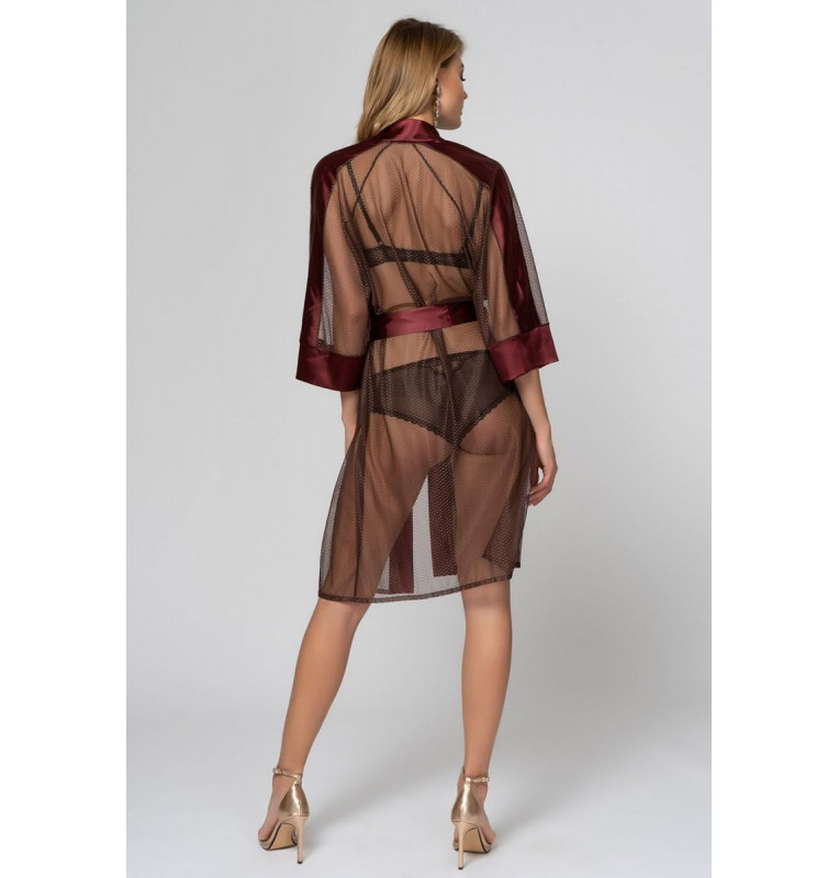 Легкий халатик выполнен из полиэстера высокого качества. Халат на запахе, свободного кроя для комфортной носки. Края полочек и съемный пояс выполнены из атласной ткани. Лёгкий халат настроит не только на отдых, но и более яркое продолжение дня.