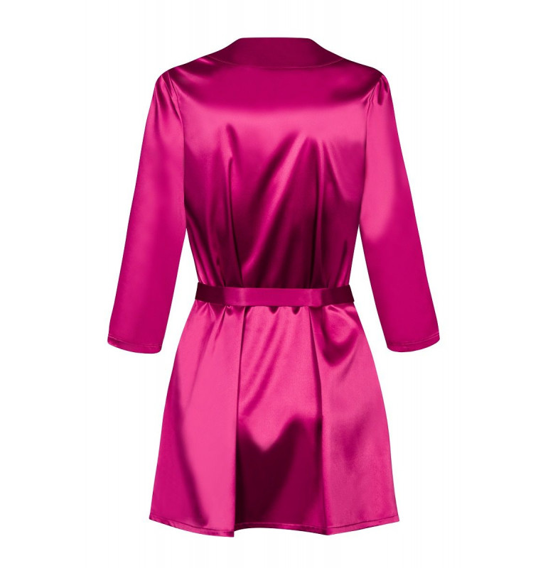 Халатик Satinia – тот самый предмет одежды, который так приятно накинуть на себя, встав с постели утром, и так приятно снять, чтобы вновь оказаться в этой постели в объятиях любимого. Коротенький халат с запахом и длинным пояском, который можно завязать бантом, выполнен из материала, тактильно и блеском напоминающего атлас. Рукава длиной 2/3 отделаны чёрным гипюром по краю. В комплекте аккуратные трусики-стринги. В комплекте: халат, трусики-стринги.