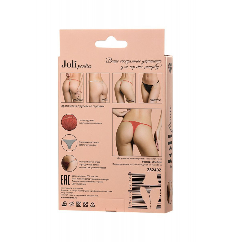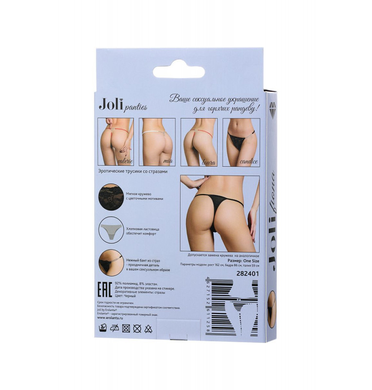 Цветочный орнамент в мягком кружеве спереди. Аккуратный и нежный бант из страз у основания трусиков как намек вашему партнеру, какой подарок ему достался. Хлопковая ластовица и мягкие лямки обеспечат комфорт.