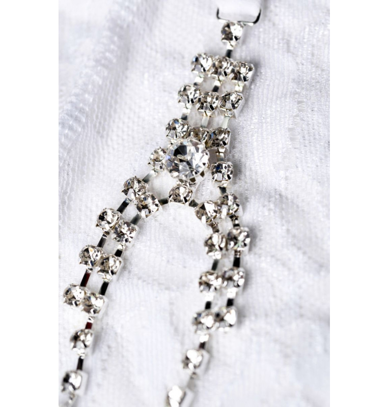 Элегантные и невесомые цветочные кружева спереди. Хлопковая ластовица и мягкие лямки - комфортная нотка вашей сексуальности. Цепочки из страз сзади создают акцент на ваших ягодицах.