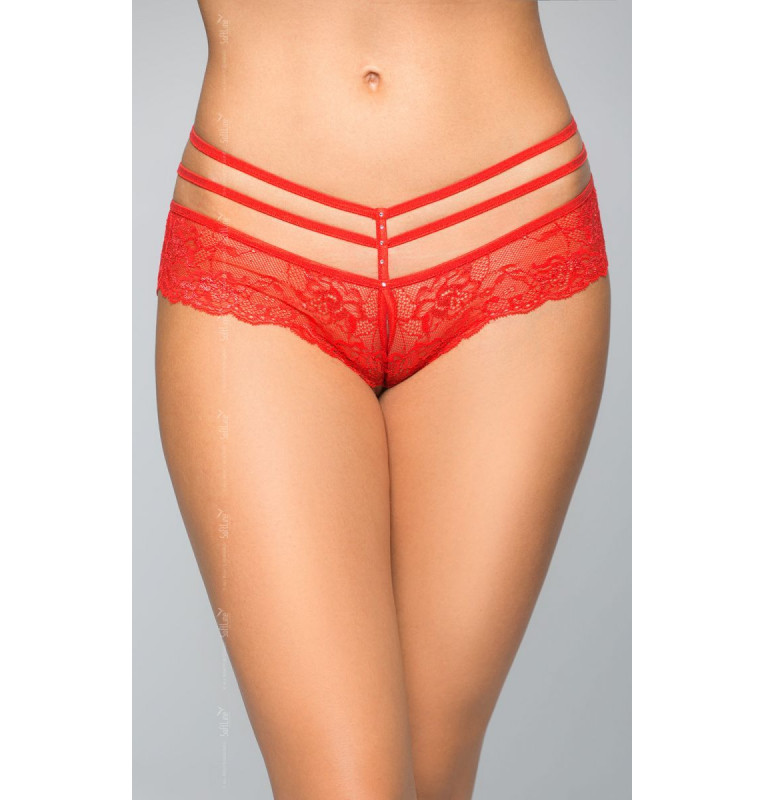 Трусики кружевные с открытым доступом выполнены из роскошного кружева. Тонкие резиночки подчеркивают соблазнительную линию бедер.