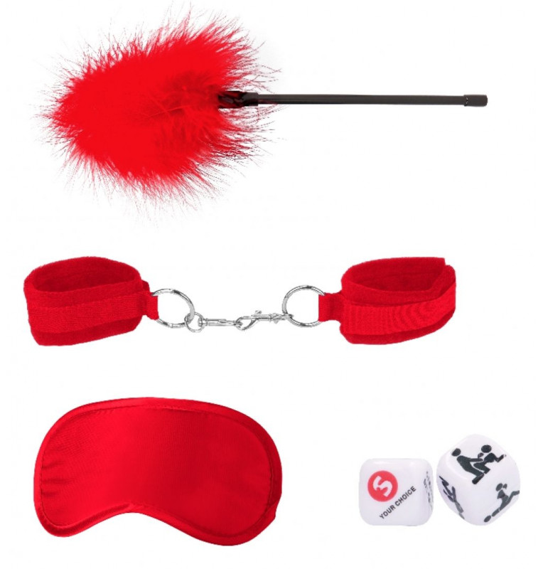 Introductory Bondage Kit №2 – набор, состоящий из 4 предметов для эротических ролевых игр и практик БДСМ. В комплекте: наручники, маска, пуховка, 2 игральных кубика. Длина пуховки - 28 см.