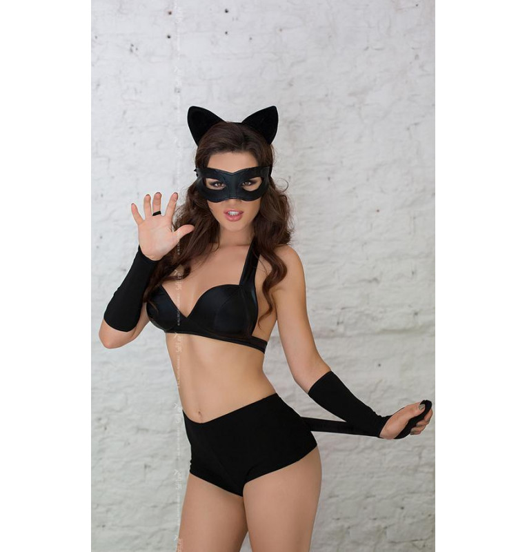 Если что-нибудь занятное попало этой кошечке в лапы, она уж не упустит его - до тех пор, пока не наиграется вдоволь. И только попробуйте отнять – выпустит коготки! Ласковая и одновременно игривая чёрная прелестница загипнотизирует вас своим урчанием, вынудит гладить её по спинке и чесать за ушком. В ответ на ласки киса обязательно пройдётся по вашему телу язычком… Мур? Этот комплект поможет разнообразить сексуальную жизнь и превратить ночь в сексуальную игру. Плотный лиф на широких бретелях эффектно приподнимает, и в то же время поддерживает пышную грудь, не позволяя ей потерять свою соблазнительность даже во время движения. Милые шортики с хвостиком помогают войти в образ, а маска и ушки добавляют наряду кокетливости. В комплекте: бюстгальтер, шортики, головной убор, маска, перчатки.