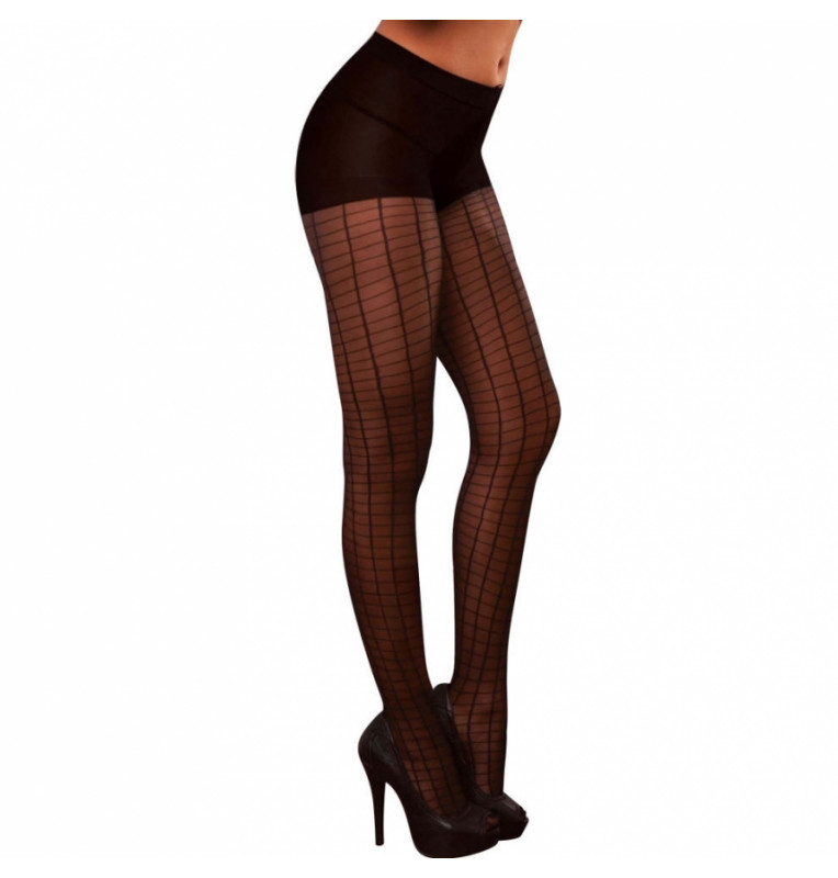 Черные прозрачные колготки с немного уплотненными шортиками и рисунком в квадратик. Колготы с высокой талией.