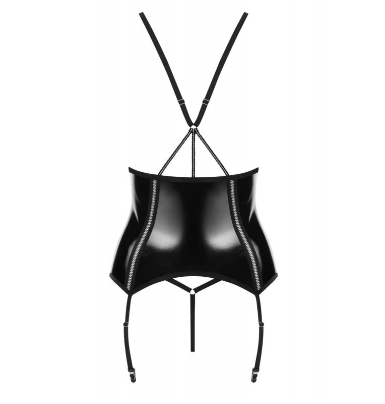 Соблазнительный корсаж Stormea с подвязками для чулок выполнен из эластичного материала имитирующего кожу. Лиф с мягкими чашками без косточек. Бретели и подвязки регулируются по длине. В комплекте: корсаж, трусики-стринги.