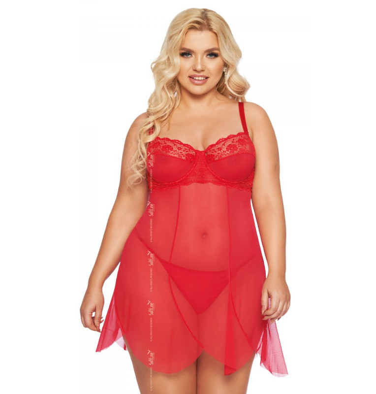 Сорочка бэби-долл Carla. Лиф украшен кружевом. Подол полупрозрачный и асимметричный. В комплекте: сорочка, трусики-стринги.