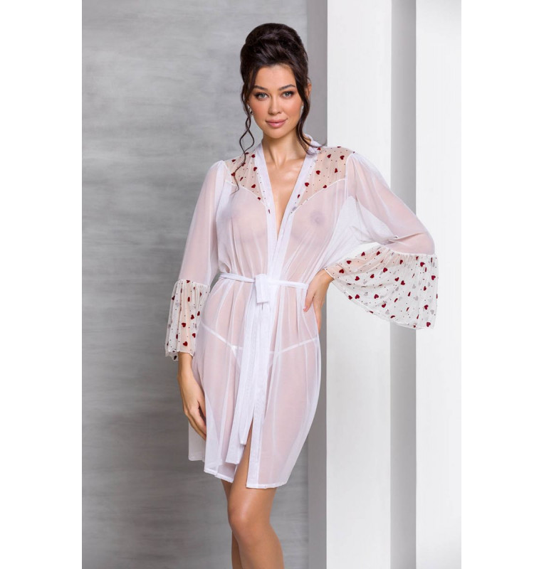 Очаровательный пеньюар Lovelia с длинным рукавом. Выполнен из полупрозрачного тюля с принтом сердечки. В комплект входят контактные стринги. Пеньюар упакован в красивую плотную коробку. В комплекте: пеньюар, трусики-стринги.