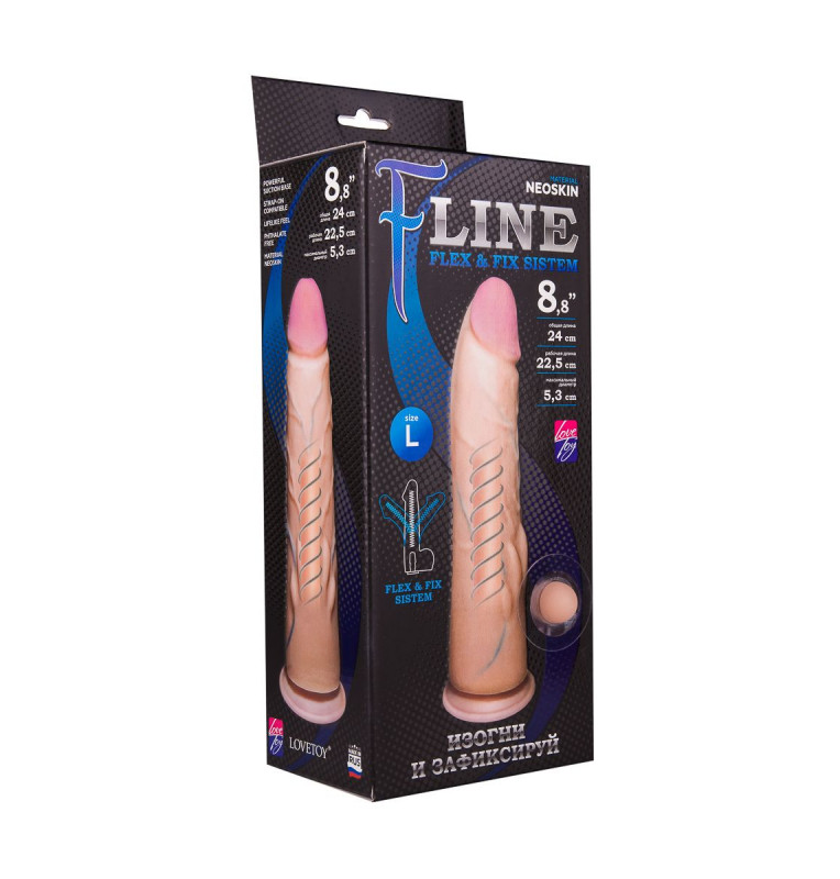 Фаллоимитатор изготовлен из неоскин, имеет многослойную структуру. Наружная оболочка сделана из мягкого материала. Внутренний каркас изготовлен из более прочного полимера, который можно изогнуть и придать ему любую форму. Имеет мощную присоску. Рабочая длина - 21,5 см. Диаметр головки - 3,9 см.