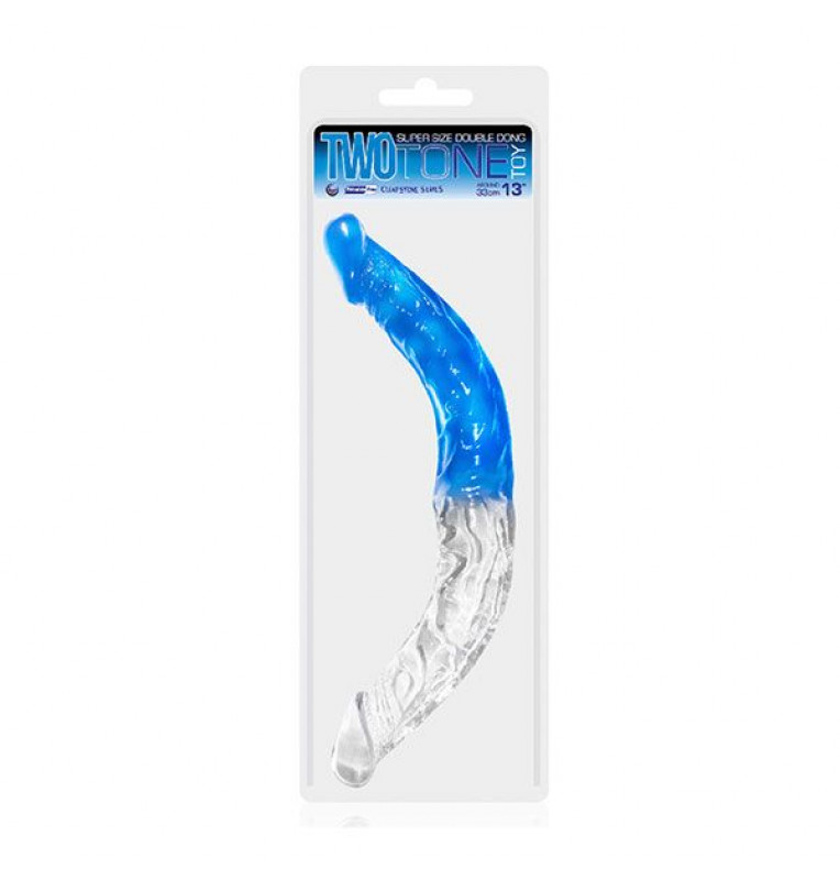 Прозрачно-голубой двусторонний фаллоимитатор - 33 см.