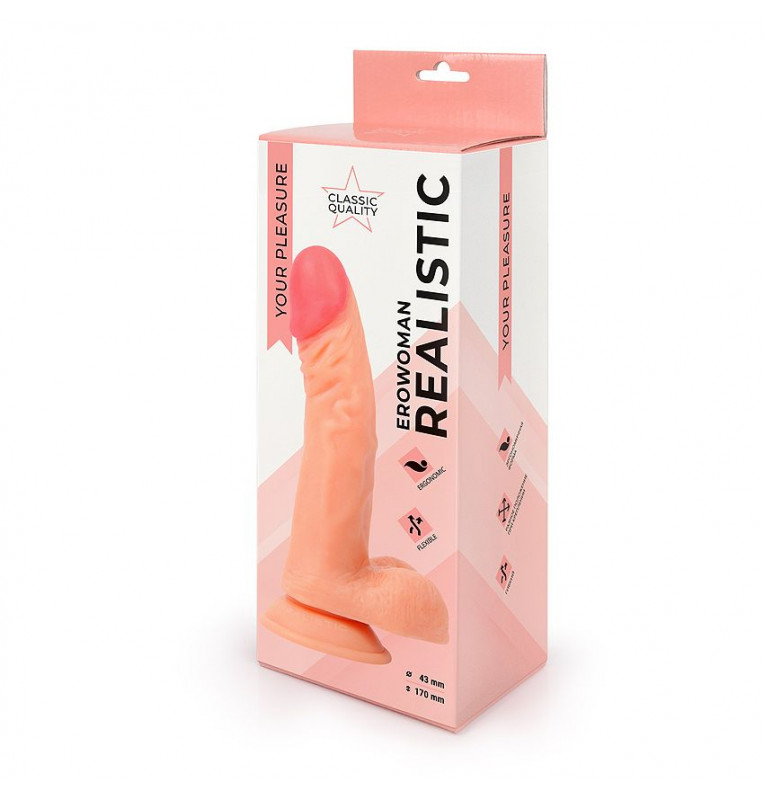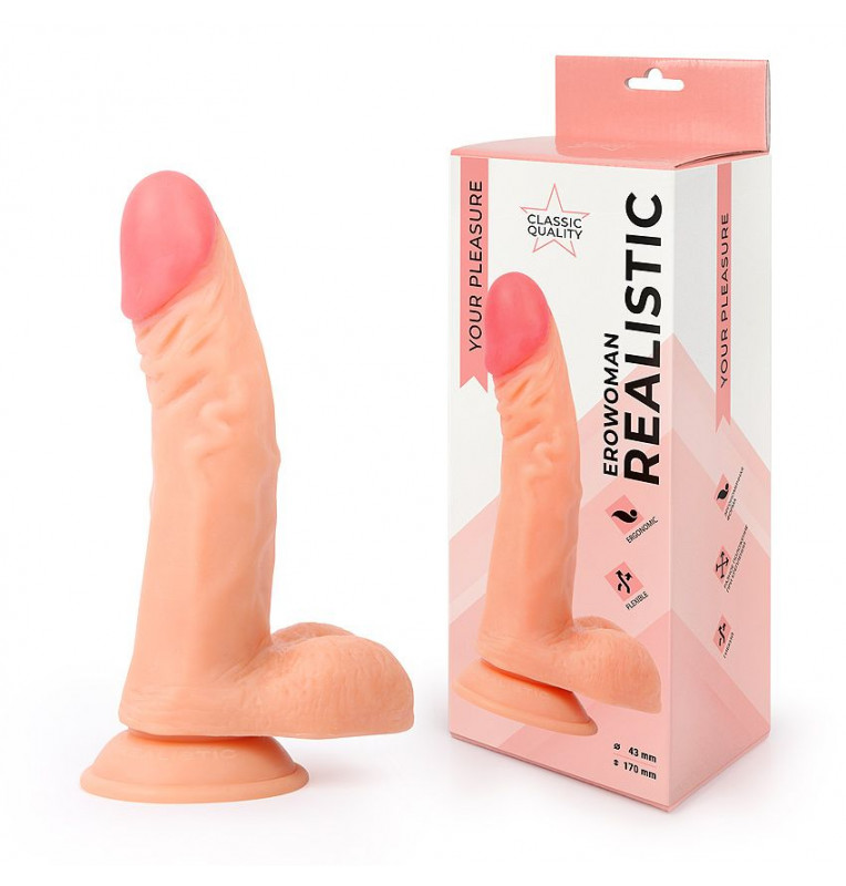 Великолепный фаллоимитатор-реалистик Erowoman займёт достойное место в любой коллекции секс-игрушек! Основные плюсы изделия - это прекрасное качество исполнения точная имитация всех деталей - чётко выраженная головка и мошонка, хорошо прорисованные венки и складочки естественный оттенок поверхности прочная присоска, позволяющая закрепить интимный аксессуар на ровной поверхности в горизонтальном или вертикальном положении. Фаллоимитатор изготовлен из мягкого материала, дарящего приятные тактильные ощущения. Прост в использовании и уходе. Рабочая длина - 17 см.