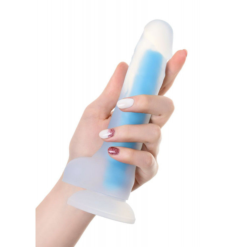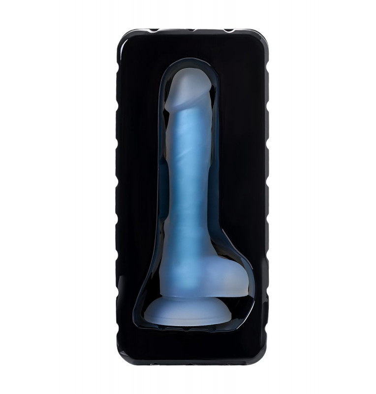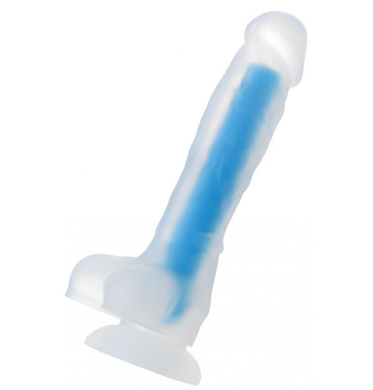 Прозрачно-синий фаллоимитатор, светящийся в темноте, Matt Glow - 18 см.