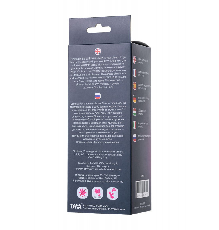 Светящийся в темноте James Glow — твой выход за пределы реальности с собственным героем. Можешь не волноваться! Он спасет тебя от скучных ночей и серой действительности, ведь, как у каждого супергероя, у James Glow есть сверхспособность. В темноте из обычной реалистичной игрушки он превращается в сияющий жезл удовольствия. Внешняя часть, идеально имитирующая мужское достоинство, выполнена из жидкого силикона — такого приятного и нежного на ощупь. Внутренний слой светится благодаря безопасной фосфоресцирующей пудре. Позволь James Glow стать твоим героем. Рабочая длина - 13 см.