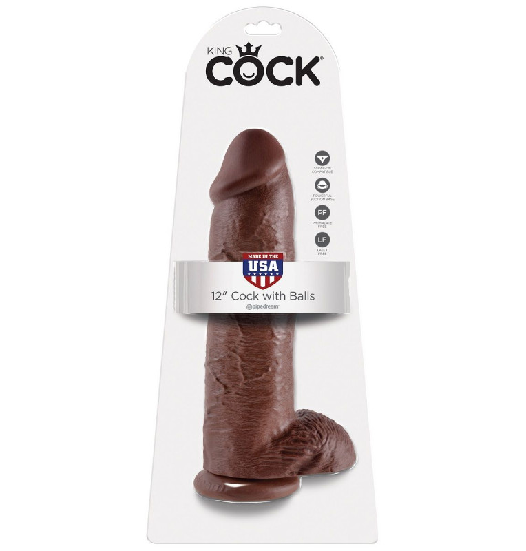 Коричневый фаллоимитатор-гигант 12 Cock with Balls - 30,5 см.