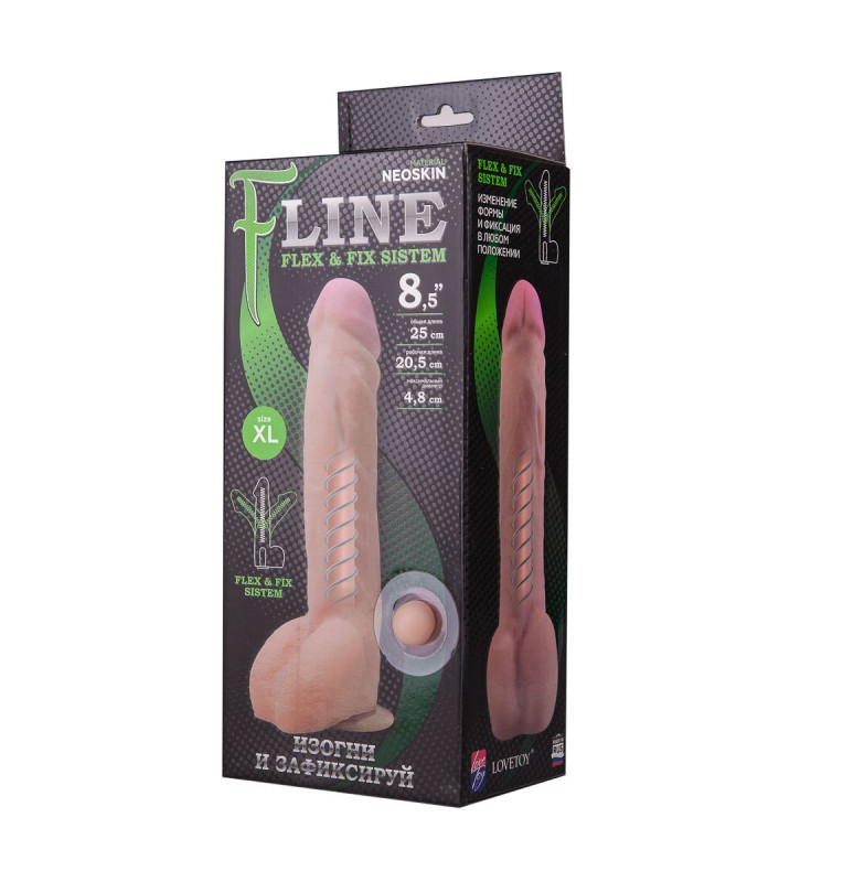 Фаллоимитатор F Line длиной 25 см – это увеличенная версия классического девайса F Line. От других игрушек его отличает неоскин: материал, из которого он сделан. Это новый вид киберкожи, который позволяет вам почувствовать вам прикосновение не искусственной, а человеческой кожи. Также, интересным качеством устройства является особый полимер, который заключен внутри него. Он позволяет гнуть фаллоимитатор и менять его форму. Вы можете экспериментировать и каждый раз пробовать что-то новое, используя его. Рабочая длина - 20,5 см.