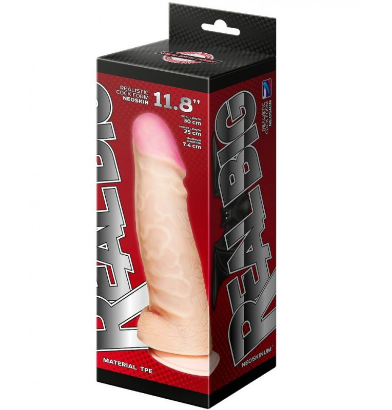 Впервые представлен реалистик больших размеров из материала неоскин. Использована технология нанесения сверхмягкого материала на эластичный, полужесткий каркас. Подобрано оптимальное соотношение упругости, мягкости, тактильных ощущений – словом всего того, что напоминает биологический прототип, но очень больших размеров. Рабочая длина - 24 см. Минимальный диаметр - 7 см.