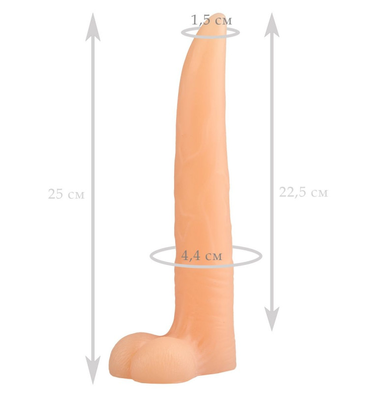 Этот оригинальный фаллоимитатор для любителей необычных сексуальных игр. На фаллосе рельефные выпуклые точки для страстной стимуляции эрогенных зон. Присоска в основании служит для крепления к любым ровным поверхностям. Благодаря необычной формы, эта игрушка обеспечит Вам незабываемый внутренний массаж! Рабочая длина - 22,5 см. Минимальный диаметр - 1,5 см.