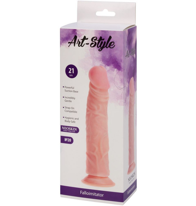 Рельефный фаллоимитатор на подошве-присоске ART-Style №20 - 22 см.