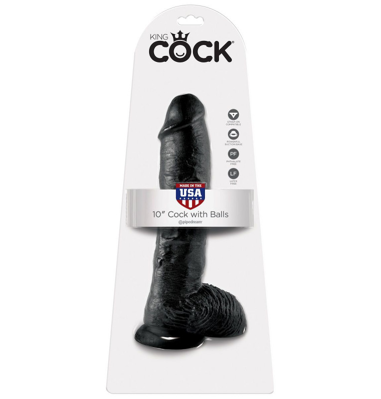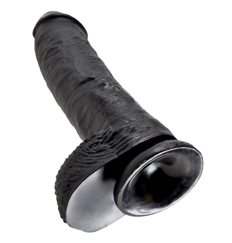 Реалистичный чёрный фаллоимитатор-гигант 10 Cock with Balls - 25,4 см.